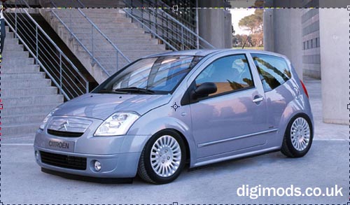 lower itself over the wheels. There we go! Its all nice and low now (just ready for some alloys I think you'll agree). You can at this point hit CTRL+Shift+E which flatten all the layers. |