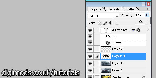 STEP 4: Using the layers box, reduce the opacity to a suitable level. A lower value opacity value will mean less window tint. | |